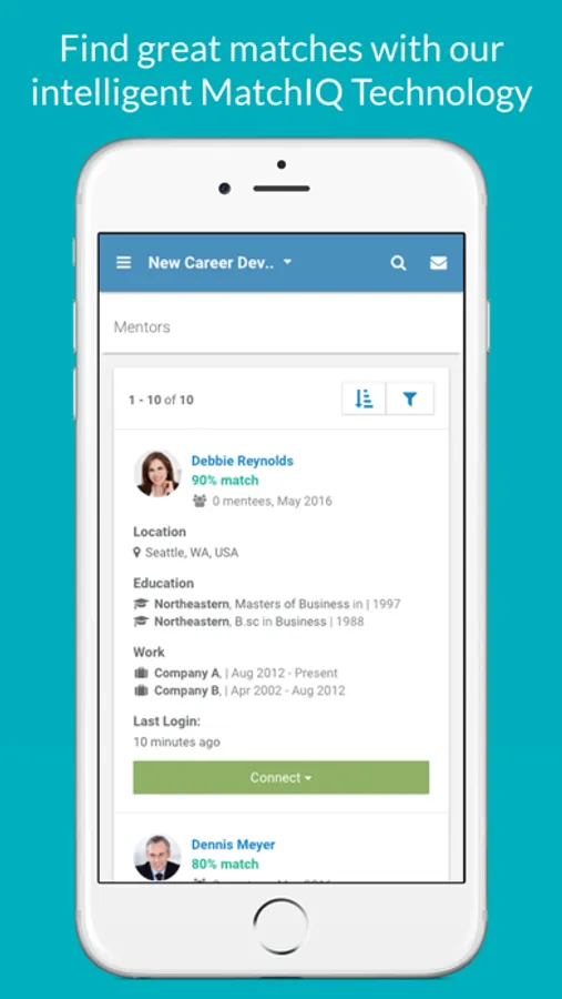 Successful mentoring starts with a successful match. That’s why we created Match IQ Technology available within our app.