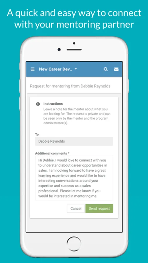 Effective communication is key to create a productive mentoring experience. With the Chronus app, you are connected anytime, anywhere with your mentor/mentee.