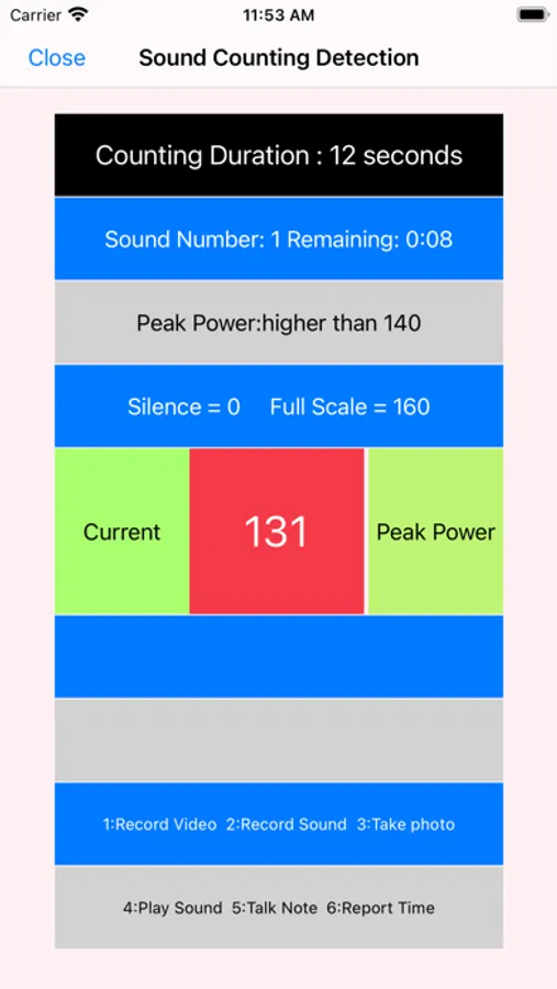 The duration of sound counting could be from 5 seconds to 30 seconds.