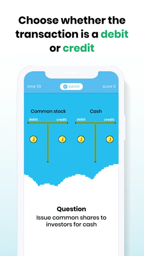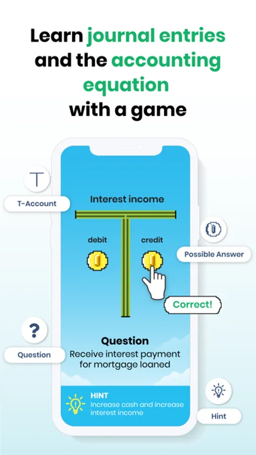 Accounting Play - Debits & Credits teaches the accounting equation with an iPhone & iPad game. Debit and Credit coins to learn, study, basic accounting and training. Play against the world as you learn. Study materials to learn the equation, debits & credits, journal entries, and accounting theory is included for free. Whether you are studying for the CPA exam or taking your first accounting course, Accounting Play will help you learn in a fast and fun way.