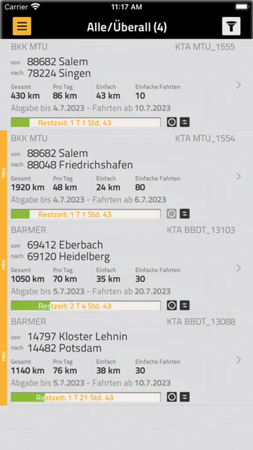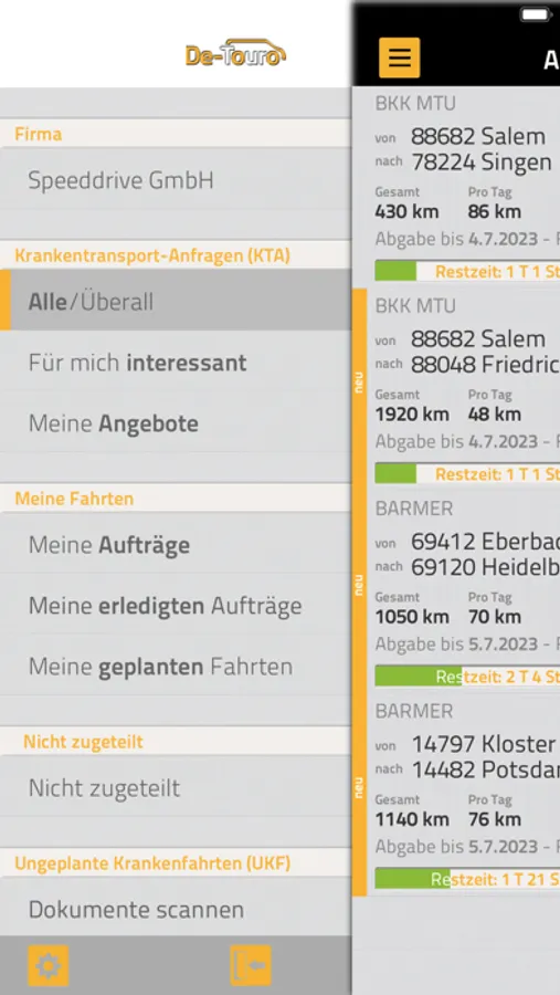 De-Touro macht es Ihnen leicht, lukrative Touren für Krankenfahrten zu erhalten. Alle teilnehmenden Krankenkassen können Sie über unsere Plattform einfach und bequem beauftragen. Mit der De-Touro-App für Ihr Smartphone oder Tablet erhalten Sie Beförderungsanfragen und Auftragsbestätigungen online – komplett ohne Papier. Ohne lästiges Eintippen und jederzeit. Und sogar die Abrechnung ist integriert!