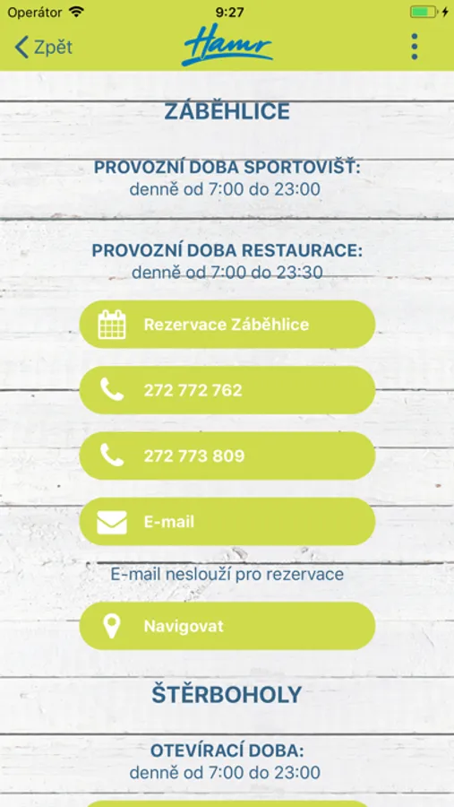 Veškeré exkluzivní informace pro sportovní areály HAMR v Záběhlicích, Braníku a Štěrboholech do vašeho telefonu!