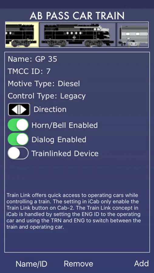 - Special screen for Legacy StationSounds Diner car control