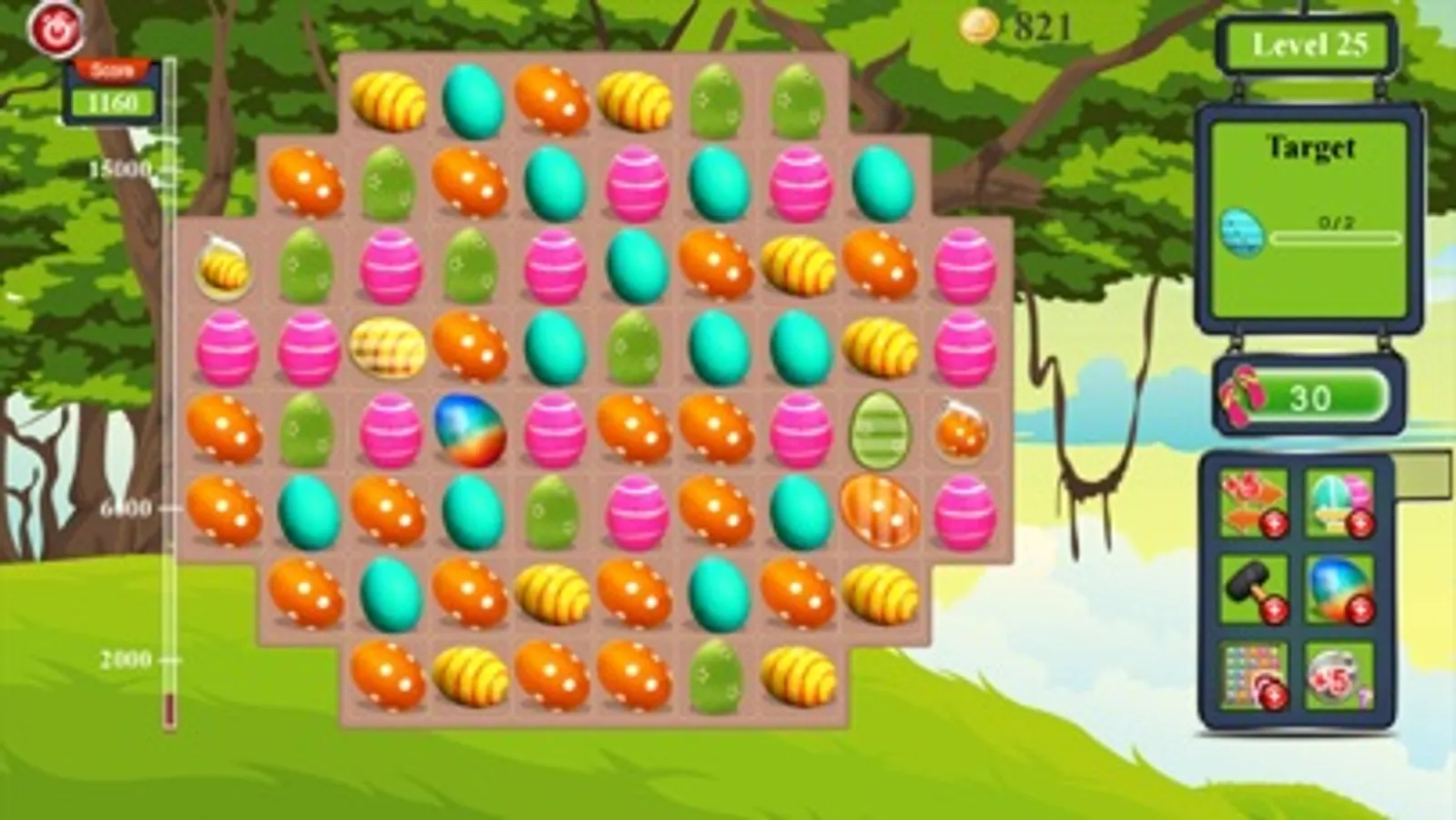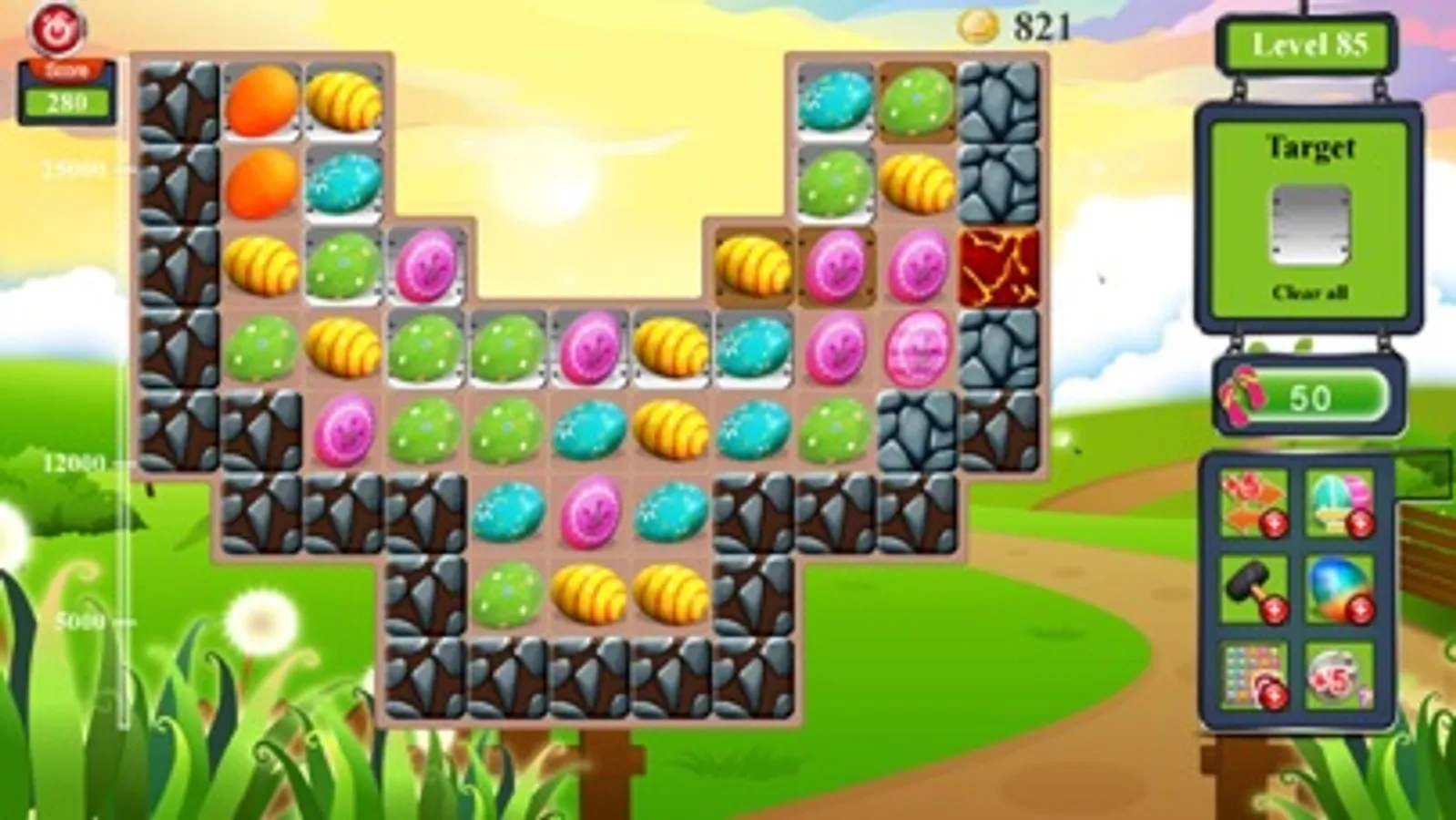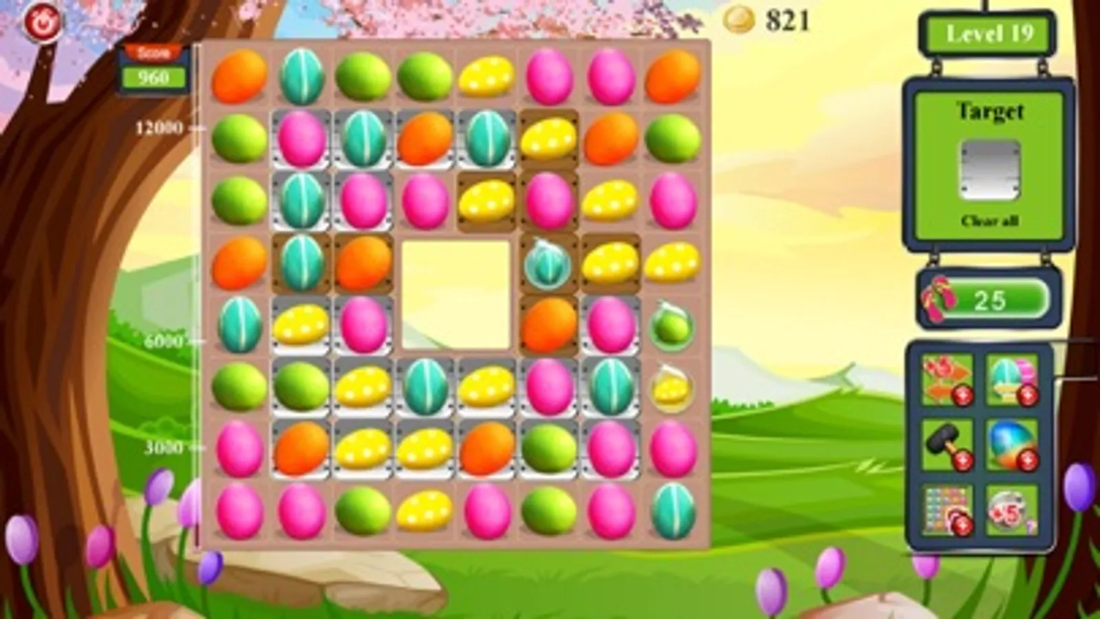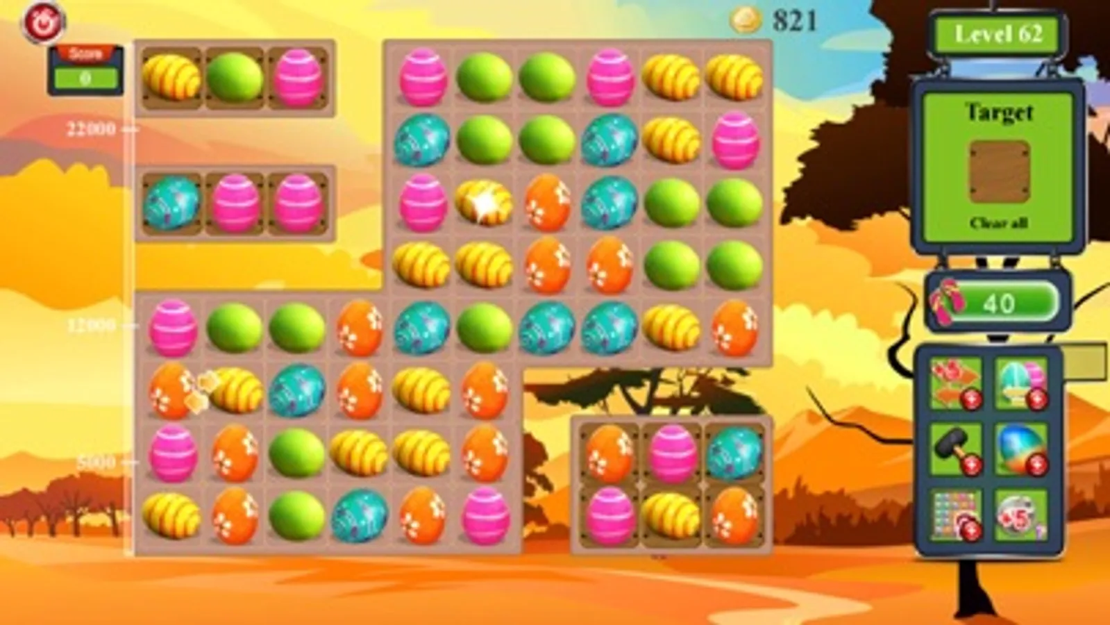 Switch three or more eggs of the same colour to gain points and other bonuses as they burst. Gain as many points as possible to achieve one, two or three stars.