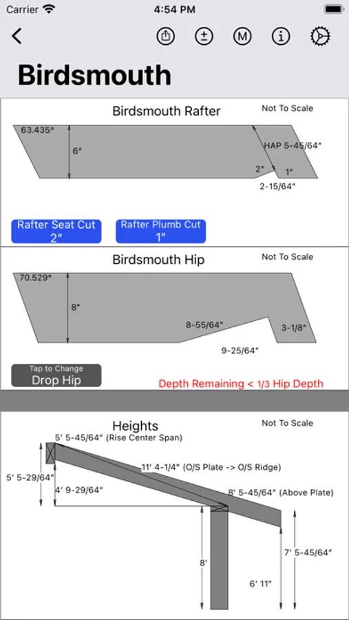 - Hypotenuse calculations eg: Calculate Pitch from ridge rise