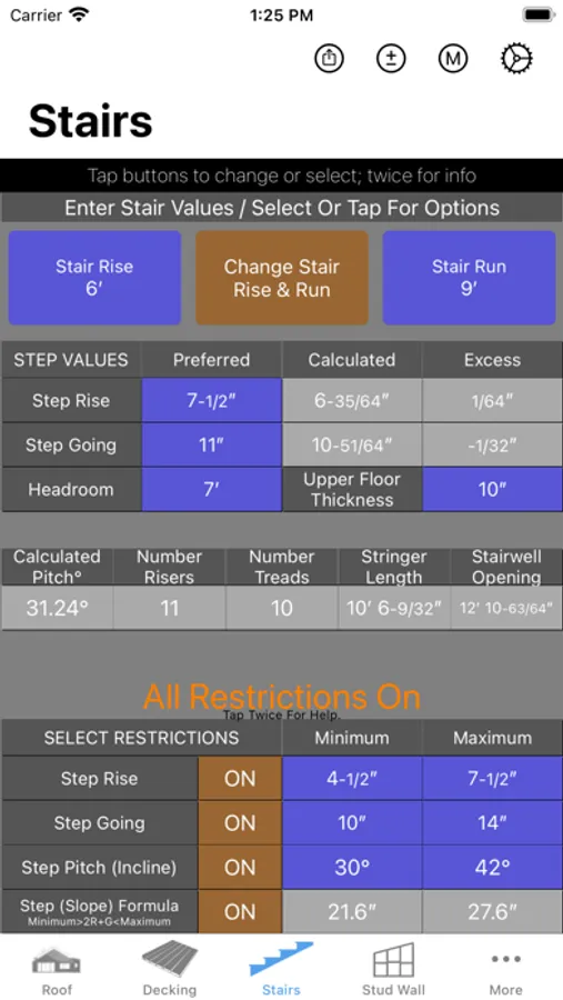 Also calculations allow for situations where the overall stair rise and run are fixed or variable allowing maximum flexibility.