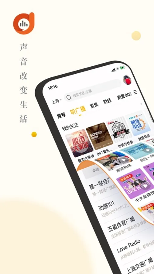 如果你对投资理财感兴趣,这里有:股市大家谈、投资与理财、江广早班车、成功在路上、东吴相对论、今日证券等众多财经类的广播节目等着你。