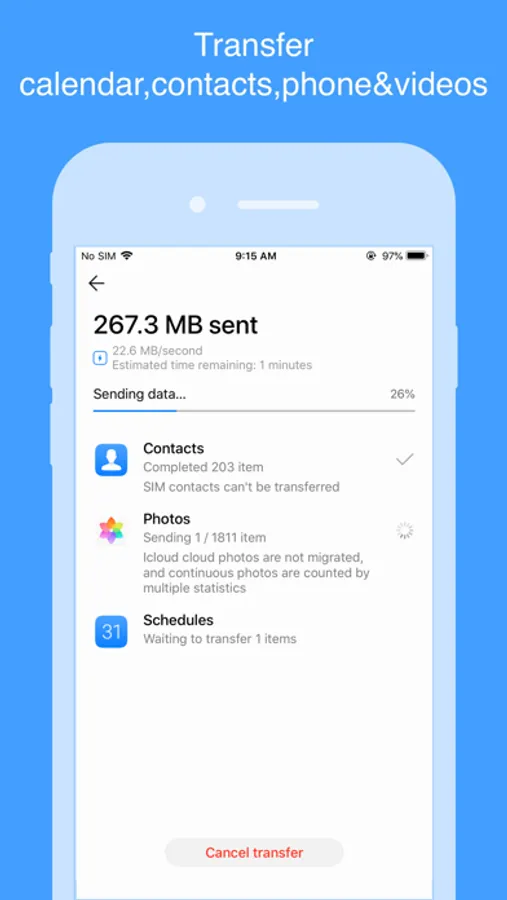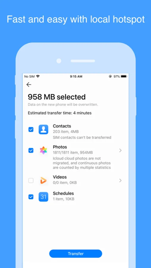 Free to use, completely wireless, easy four-step-migration & ultra-fast speed using local hotspot