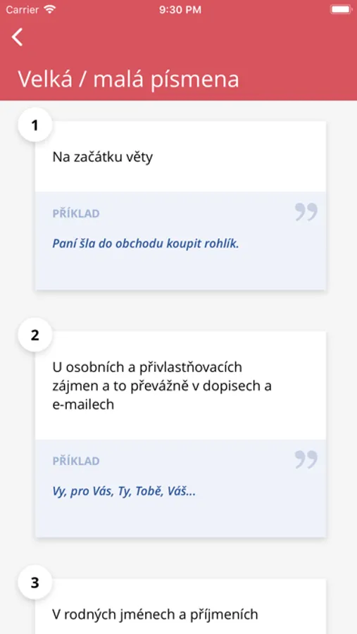 Čeština je krásný, ale zároveň také dost složitý jazyk. Každému z Vás jistě někdy z paměti vypadlo nějaké to vyjmenované slovo či pravidlo, kde psát velké písmeno, kde mě / mně apod. A právě proto vznikla aplikace Čeština do kapsy, se kterou budete mít veškeré záludnosti českého pravopisu vždy po ruce, na jednom místě, a to ve dvanácti přehledných kategoriích. Až si budete svými znalostmi dostatečně jisti, můžete se vrhnout na test (rozdělený do čtyř kategorií), který skutečně prověří, jak jste na tom (na konci se dozvíte, kde jste chybovali).