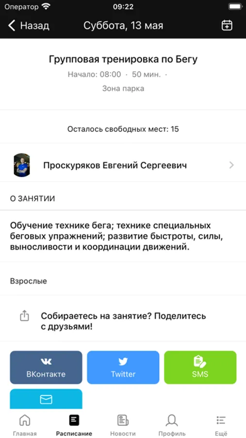 - получать оповещения о предстоящих тренировках и обо всех изменениях;