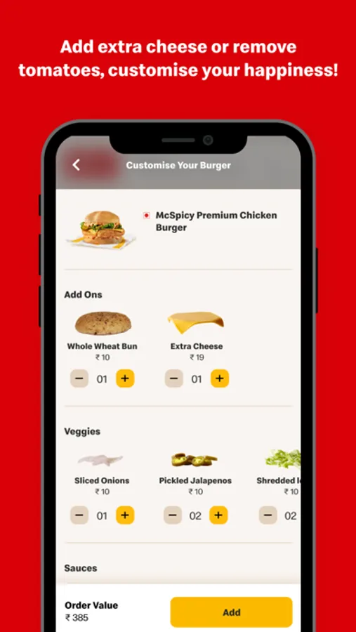 You can quickly customise your order as per your personal preferences. Whether it's an option of bun for any of the listed McDonald's burgers, add-ons such as cheese, veggies, or a choice of beverage, sides, and desserts, you will be able to customise effortlessly.
