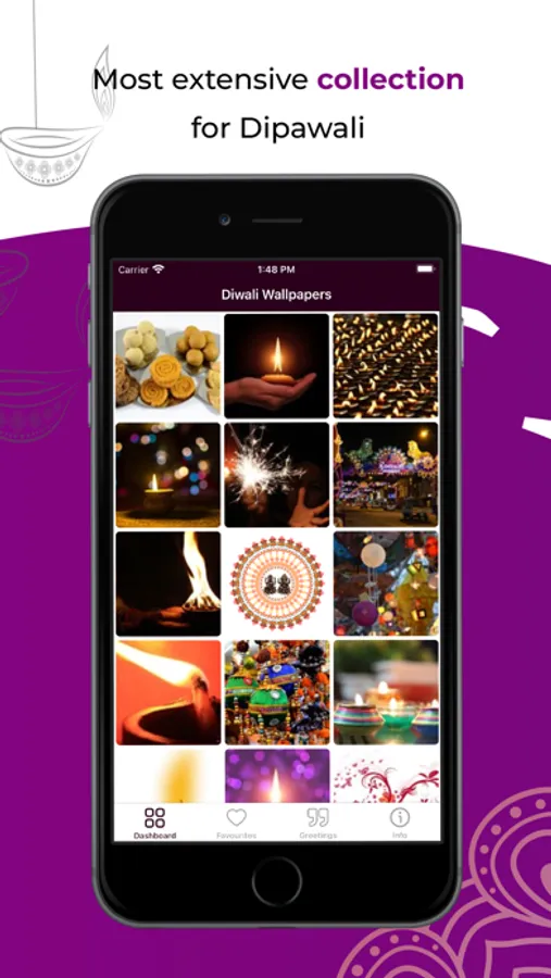 Diwali Wallpaper app contains all the high resolution wallpapers on Diwali (Biggest festival of Hindu). You can see Diwali Wallpapers using this application and share with your friends and family on this festival season. And greet your relatives by saying Happy Diwali and share wonderful images.