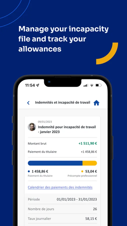 Procedures relating to incapacity for work, payment of your benefits by the health insurance provider, etc. In the event of illness or accident resulting in incapacity for work, you can also manage your file in your app.