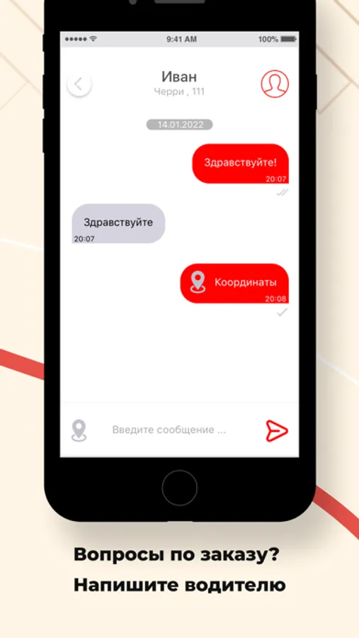 Спросите в чате приложения, где он находится или отправьте ваши координаты с помощью одной кнопкой.