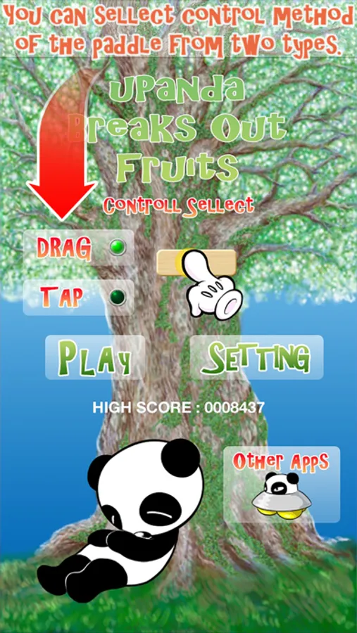 You can get 5 points if Upanda bites fruit, or 1 point wherever Upanda may collide with. You have three Upandas first and if it falls to the ground one decreases, but it oneup by 500 points.