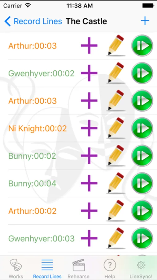 It's really simple to use. You basically create your Works, Scenes, add Characters, and Record Lines! Should you accidentally record a 30+ line scene and realize that you have one of the lines out of order, you don't have to start over! Either hit the line "plus" signet insert a new line immediately after, or simply press on the offending line, and drag it to a new position! Voilà! You are all set.