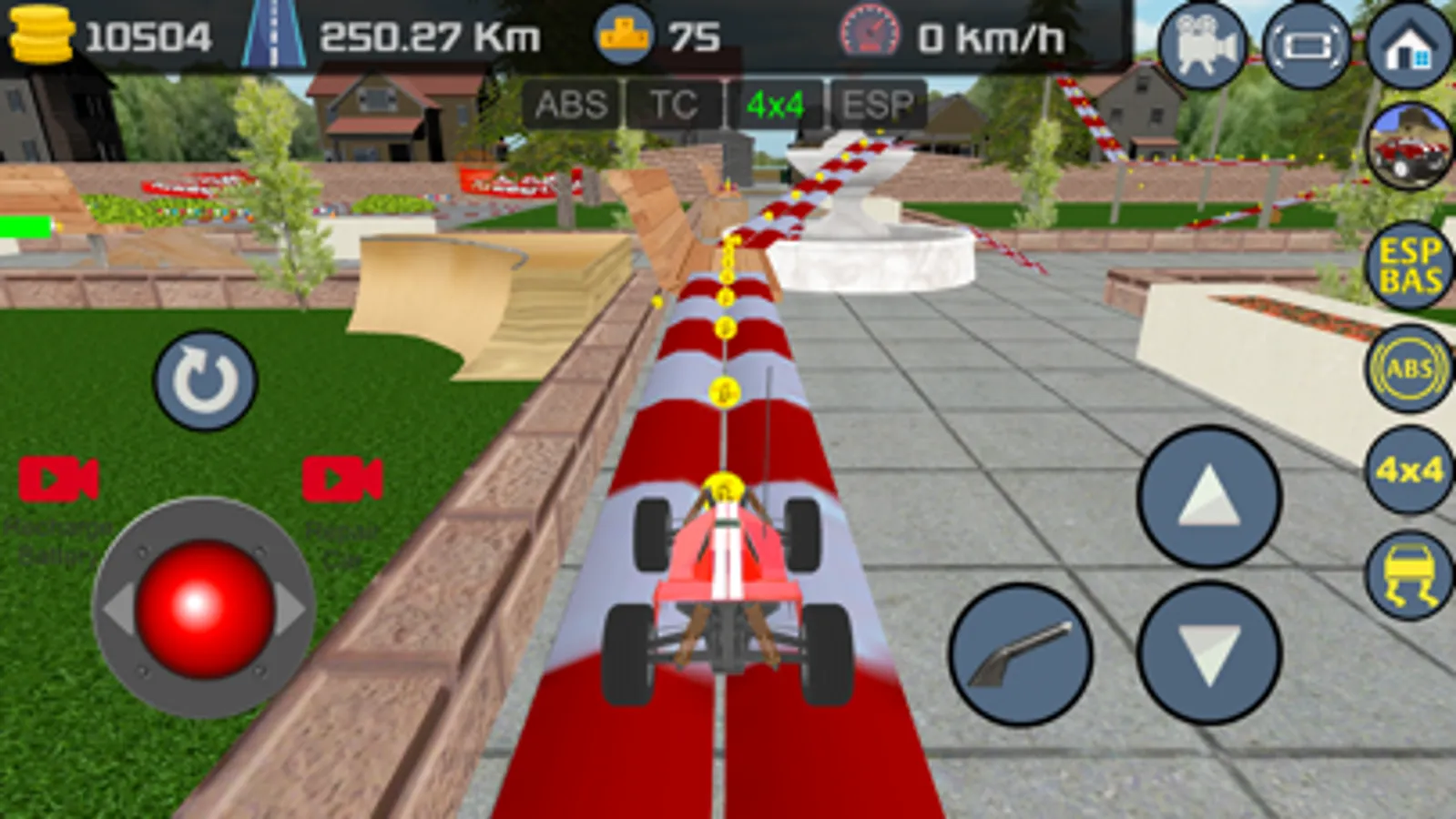 - Racing classic type controls: steering wheel buttons and accelerator, brake and parking brake. The "RELOAD" button place the car with all 4 wheels on the ground.