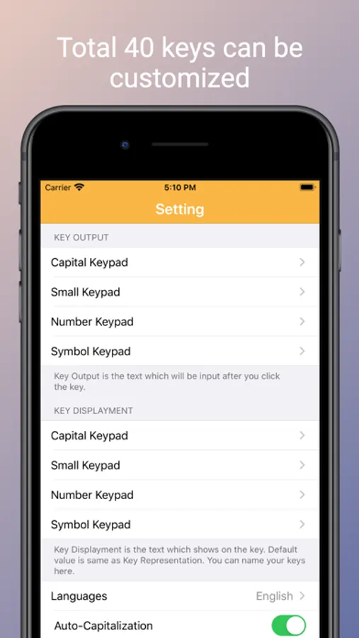 NOTICE: iKeywi requires "Allow Full Access" enabled in keyboard settings to save and load your keyboard settings. We won't record nor send any information.