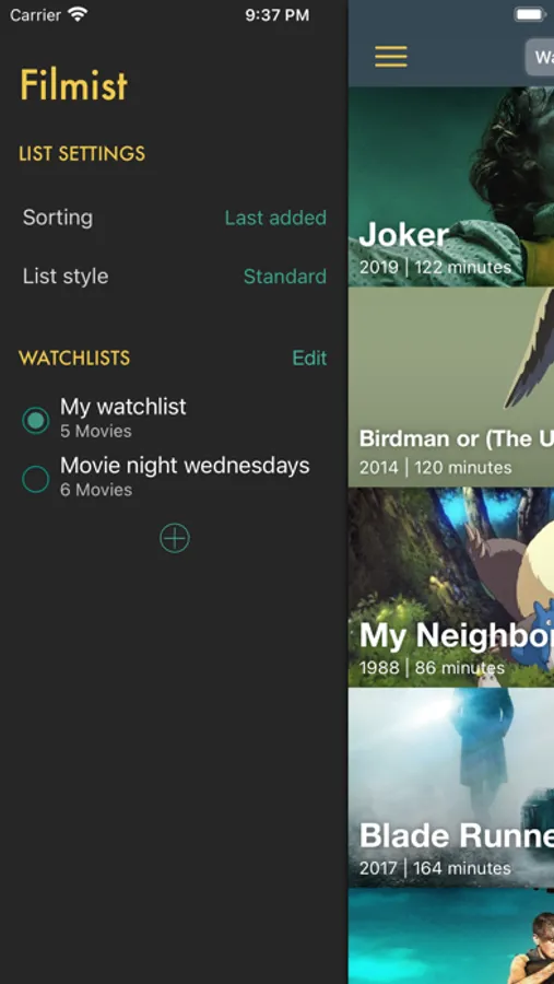 Filmist will help you keep track of the movies that you want to see. An easy to use and streamlined interface makes it quick to add new movies or crossing off a movie that you have seen.
