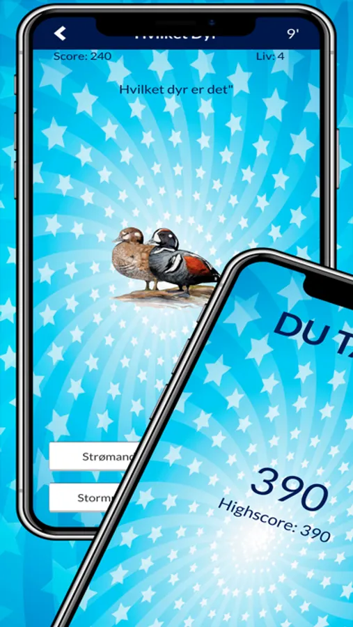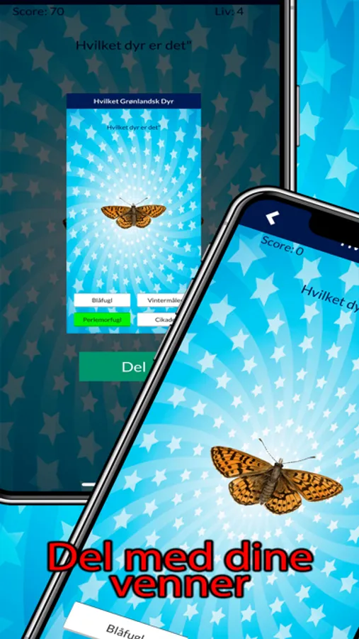 Du får et billeder af et dyr, der lever i Grønland. Du skal gætte hvad dyret hedder blandt fire svar muligheder.