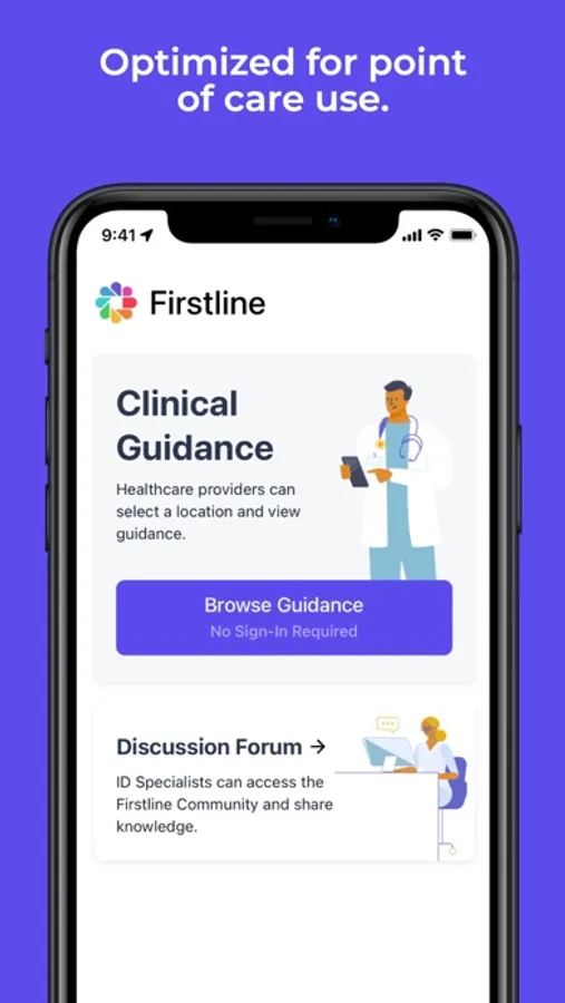 Firstline is a customizable point-of-care tool for infectious diseases. Includes Firstline Community - A discussion space for ID specialists to share guidelines, learn from each other and spread trusted knowledge.