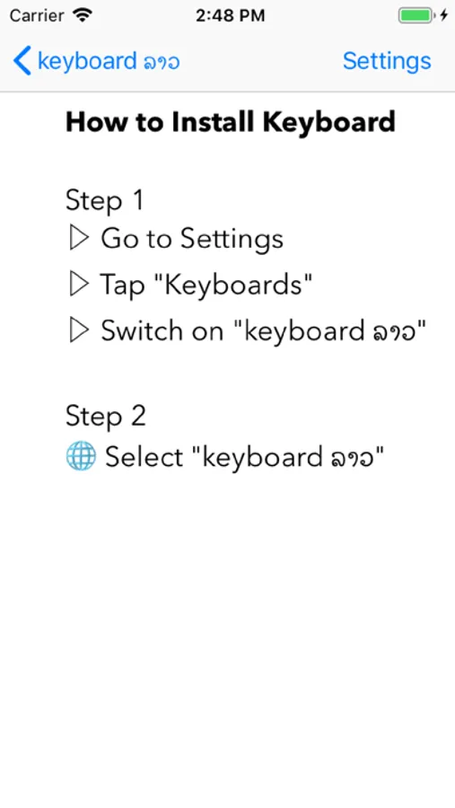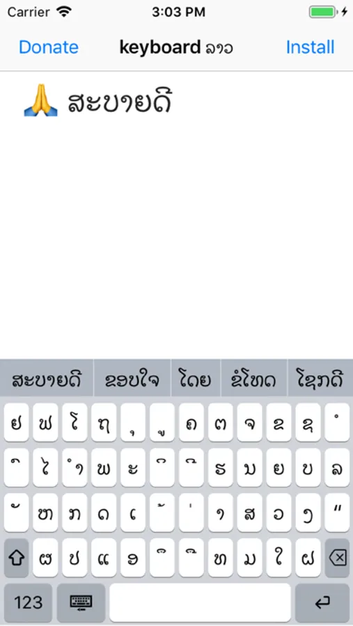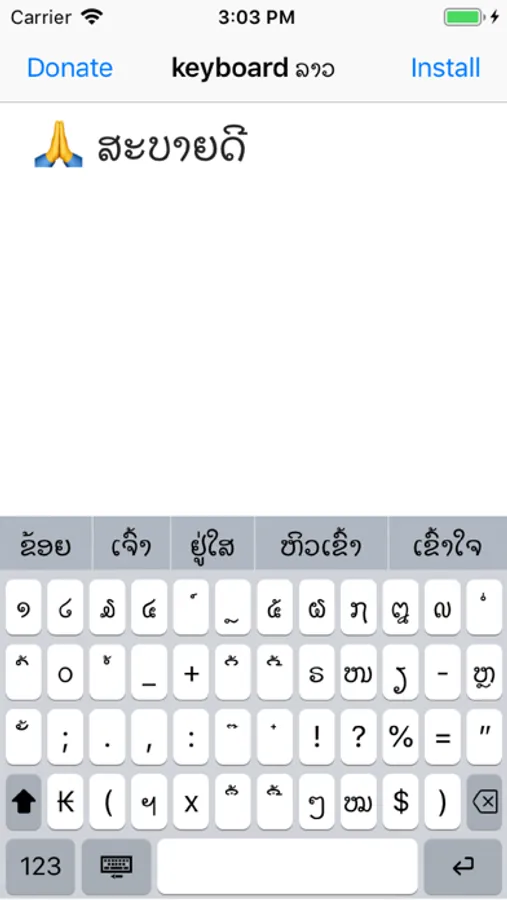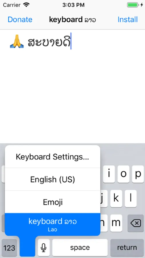 You can now type Lao to your friends and family. With the new Keyboard Lao iOS keyboard extension. Turn on the keyboard in the App Setting and type Lao in any app that allows keyboard extension.