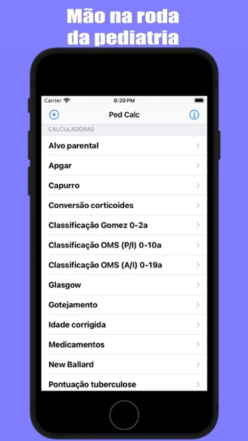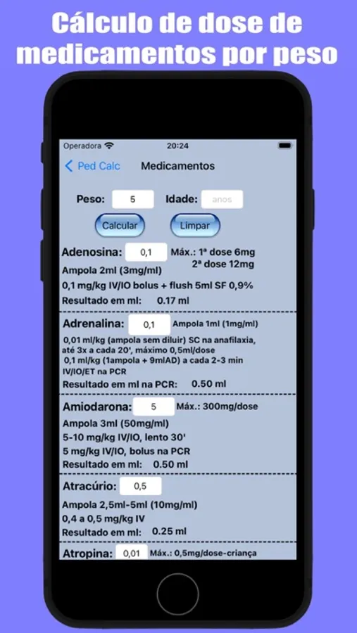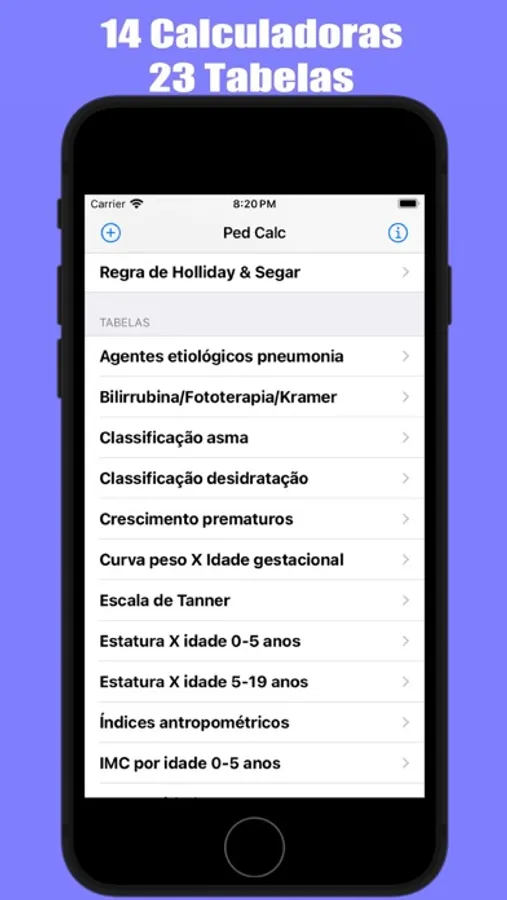 Além do CID-10 completo o PedCalc também apresenta tabelas, dentre elas estão:
