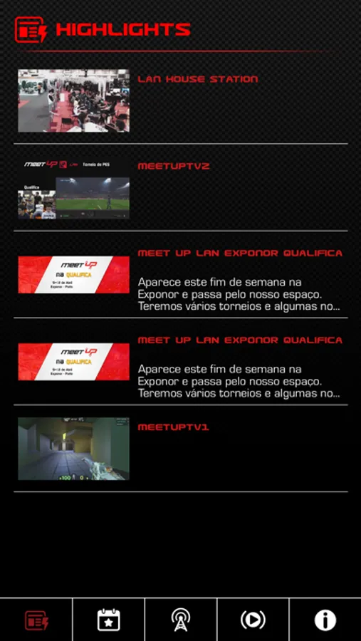 Programação por dias e locais, dos principais torneios e eventos Meet uP tanto offline como online.