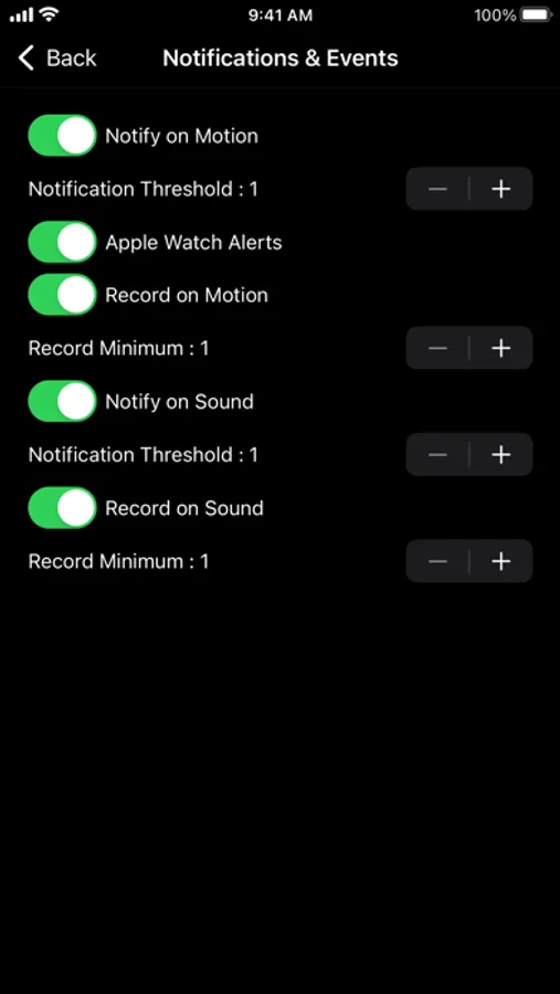 In addition to streaming live audio and video, iCamSource Pro Mobile supports the sending of notifications and recording of video events whenever motion or sound is detected.