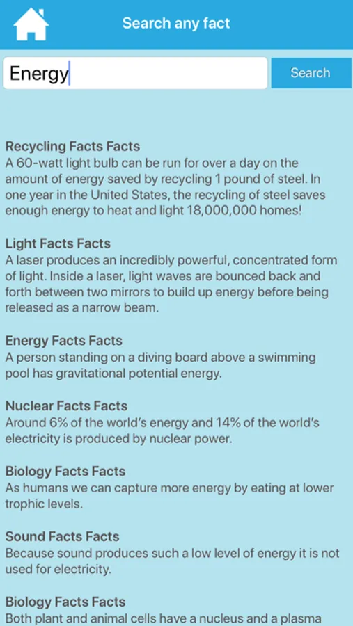 Our app has collection of interesting,fun and educational science facts that will blow your mind. You can improve your knowledge and explore the about world of science, neatly placed in different categories. You will even be able to save your favorite scientific facts in a list that you can recall, add to, or delete any time you like.
