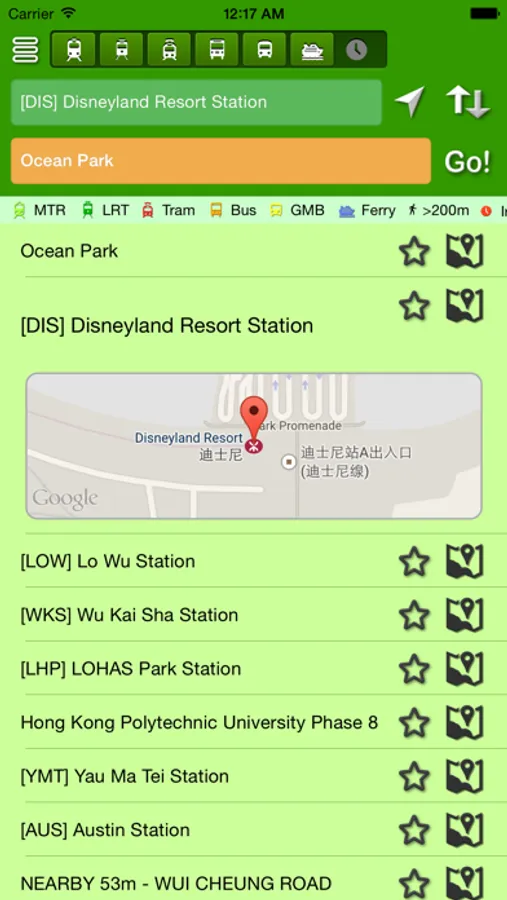 HK GO is a Hong Kong public transport journey planner in offline mode. No matter which bus stop, ferry harbour or train station you are, HK GO will be able to lead you to your destination. Public transport supported: MTR, LRT, Bus, Light Bus, Tram, Peak Tram and Ferry.