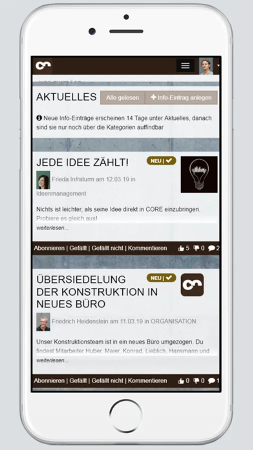 The CORE notification app informs you when there are any news or tasks for you in CORE.