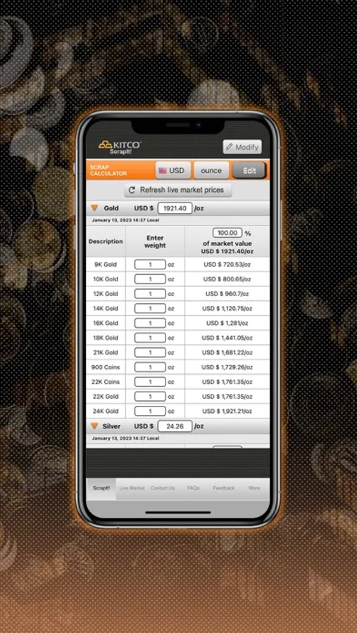 ScrapIt! is a real-time scrap gold calculator for professionals.