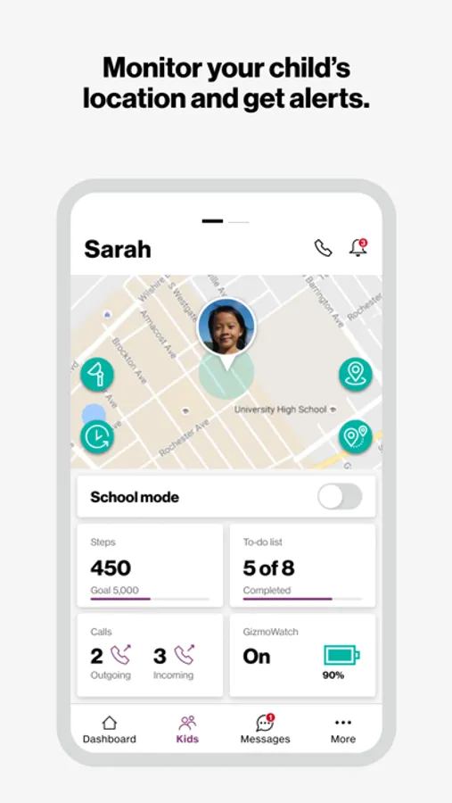 - Monitor your child’s location and receive alerts while they’re out and about.