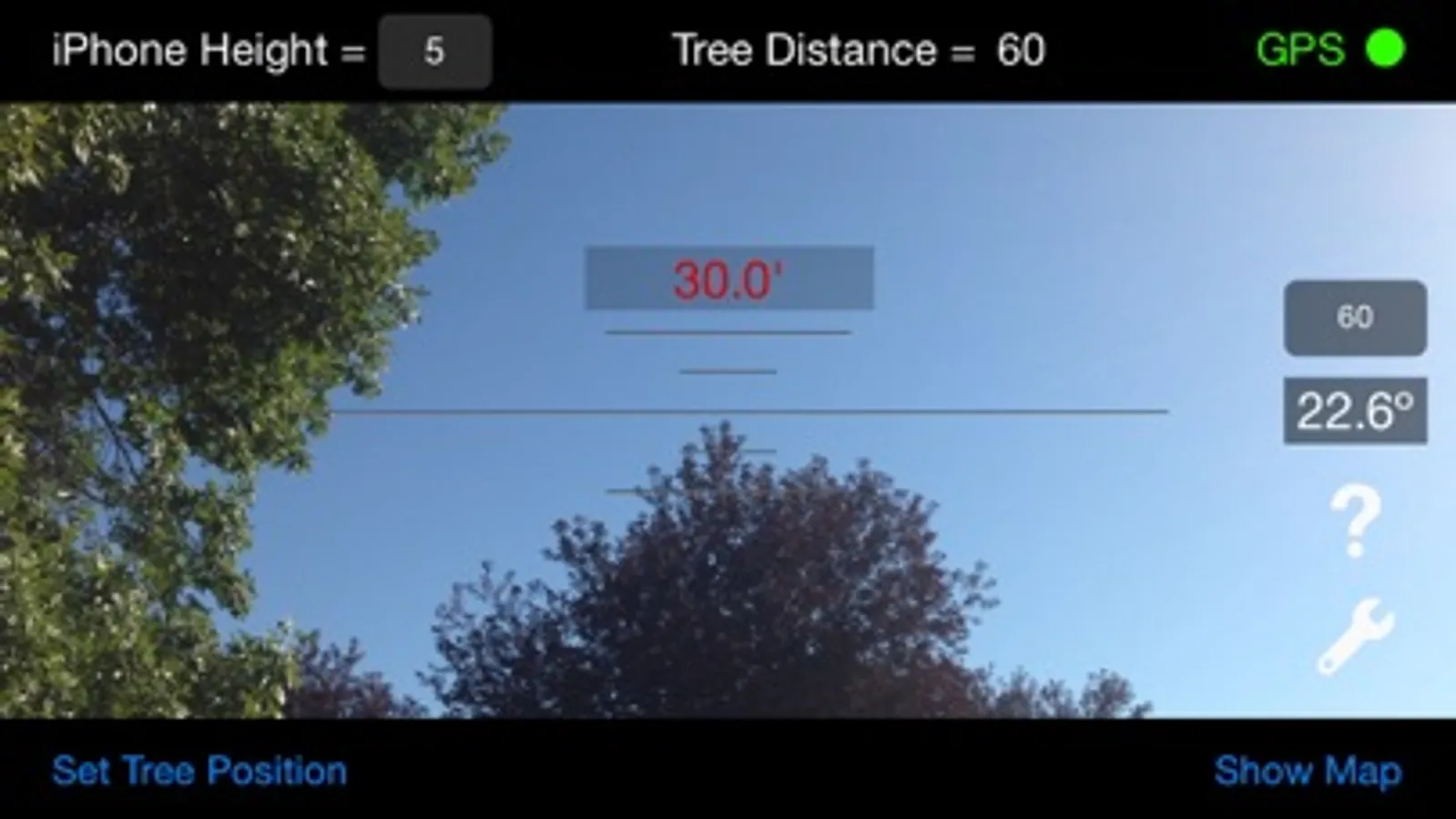 To use Timber you set the GPS position of the tree that you want to measure. Then walk away from the tree and use the app to measure the angle to the top of the tree. Timber will then calculate the height of the tree. You can also set, or adjust, the position of the tree and your current location on the map. This comes in useful if you have a poor GPS signal or if you can not get to the tree to set the position.