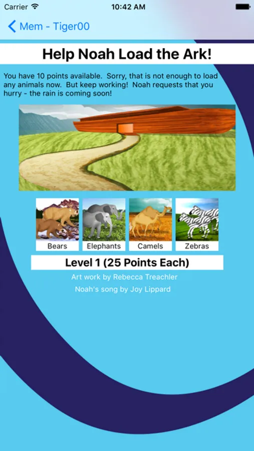 - Place animals in Noah’s ark as a reward for points earned in memory and review – hear the lion growl and the elephant trumpet!