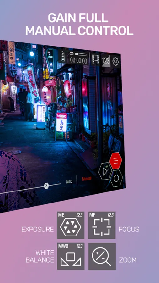 Guerrilla Filmmaker has features that no other video recording app has. We also designed the interface for quick control using touch gestures. To help you get the most out of Guerrilla Filmmaker, every feature is demonstrated through an extensive set of in-app instructional videos.