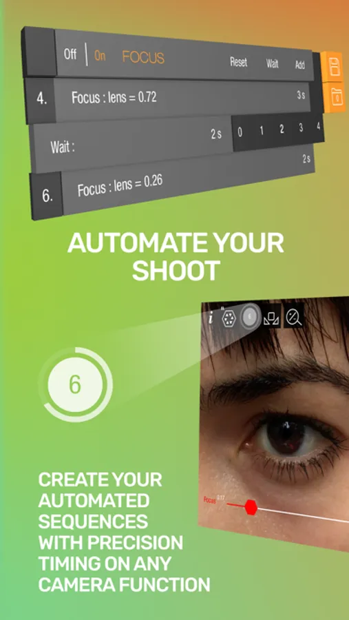Set up a pull focus sequence from one subject to another. Automate changing exposure as you track from indoors to outdoors. Create any automation sequence you can imagine.