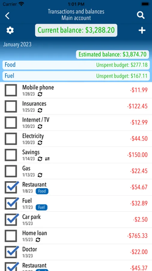 Want to know at any time your bank accounts month end balance? EstiBudget is the app for you.