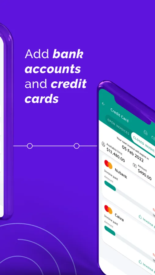 With Mobills you can manage all your credit cards in one place. Track your limit, total amount due, and never lose control of your personal finances again with a built-in bill payment reminder.