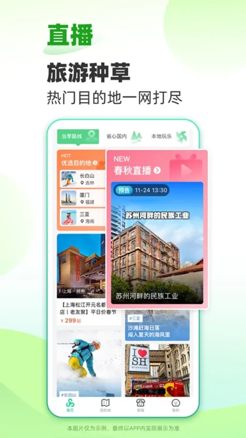 春秋旅游提供在线预定全面的旅行产品,包含全国各大旅游景点及经典路线,帮助旅行者找到高性价比的跟团游产品,每年服务数百万人出游。力推“透明团”, 食、住、行、游、购、娱、导,所有信息预先告知,看得清楚买得明白!常年特色主题游、小众节日游、“贵族之旅”纯玩团、春之旅(中外宾客同车游)、自游人、爸妈之旅,总有你爱的一款!