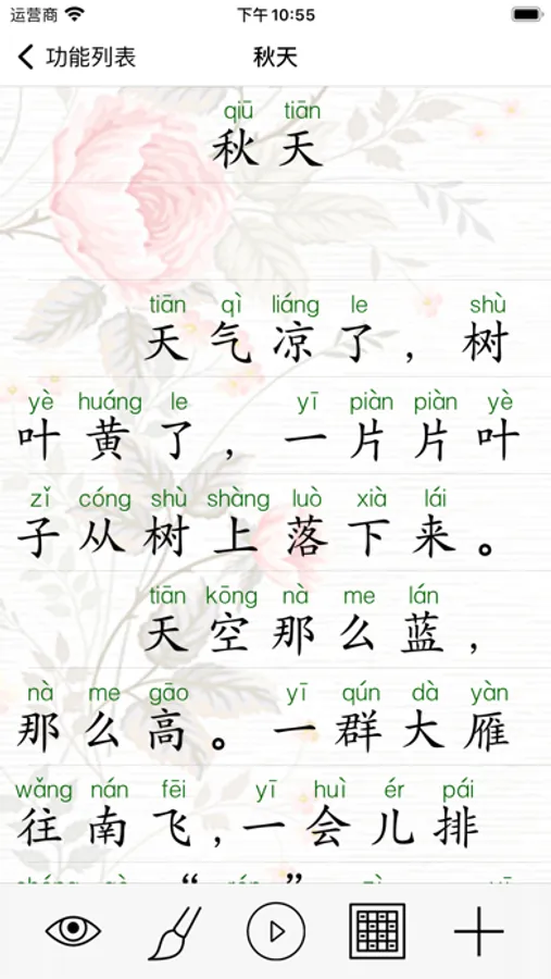 4、词组练习:有教材同步,带有词组的汉语解释和英文,支持简体、繁体、拼音和注音。