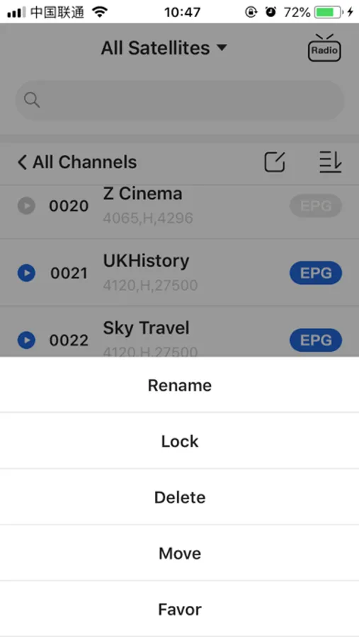 2.Edit Channels from STB, including move,rename,delete,lock,set favorite,sort.
