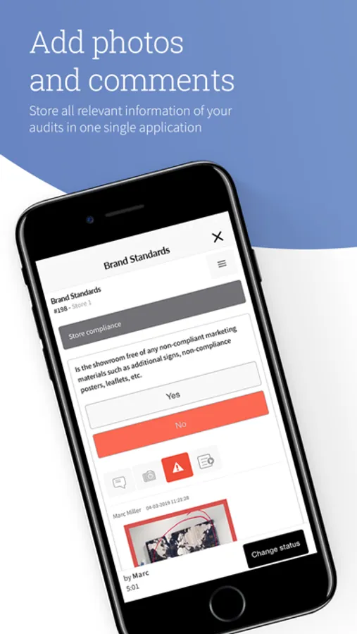 Create your own forms, checklists, control records, audits and inspections using the Iristrace desktop and make them available to your team directly on their mobile devices. Your team can answer checklists offline and check them back in later when connectivity is available again. Photos, attachments and comments can be added to the questions. Answers are timestamped and recorded.