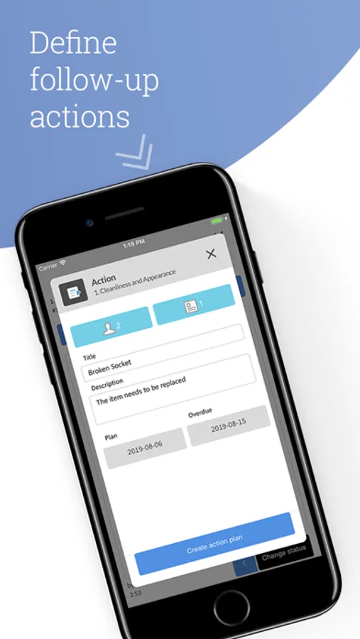 Discover issues and define action plans for issue remediation. Assign actions to individual team members, optionally with deadlines. Following up has never been easier.