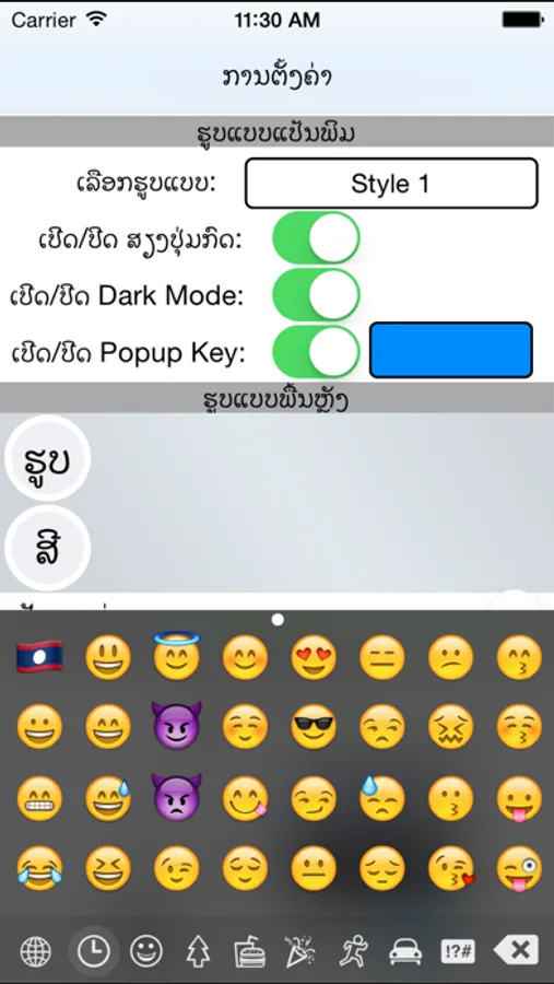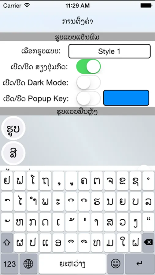 TECHNO Key for iOS 8 is the best way to typing lao language functional custom keyboards for your iOS device. You can choose your own style and add your own exciting style with background colour or use your picture, Key letter colour, key layout colour.