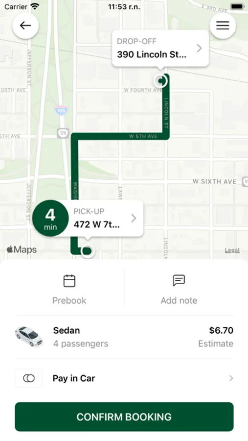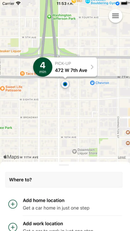 • Enter your destination address (this allows us to provide an estimated fare amount)