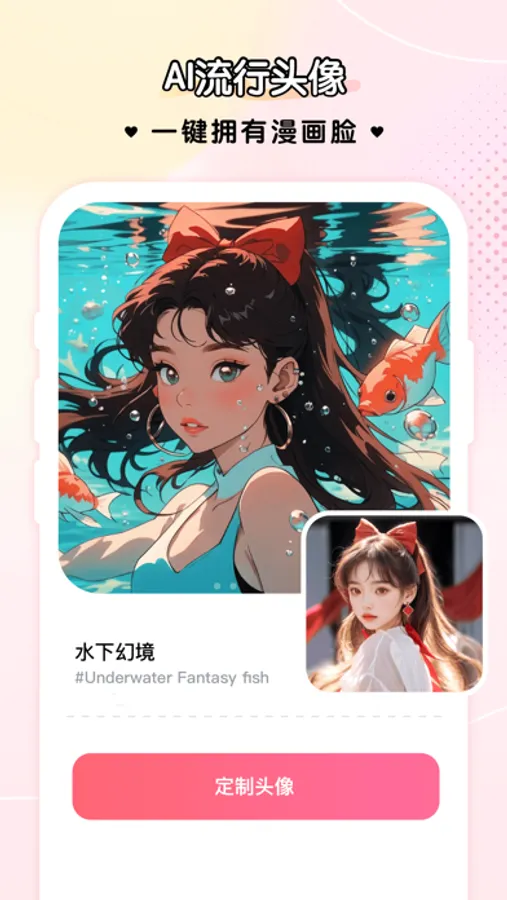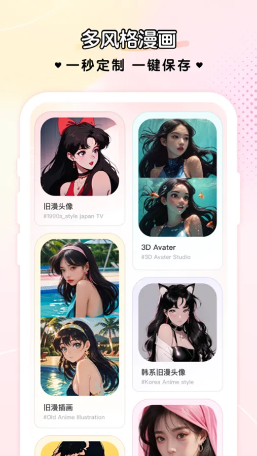 欢迎使用微咔wecut,带你走进漫画的世界轻松导入一张照片,AI即可为你自动生成任何不同风格的头像,如复古漫画风、温柔甜美风,搞怪可爱风,元气ins风,唯美古风等风格轻松切换,让你冲破次元壁,变身漫画世界的主角。操作方便,效果惊艳,每次使用都能获得意想不到的惊喜,就像打开了头像宝箱一样。新型潮流get,靓爆你的朋友圈!