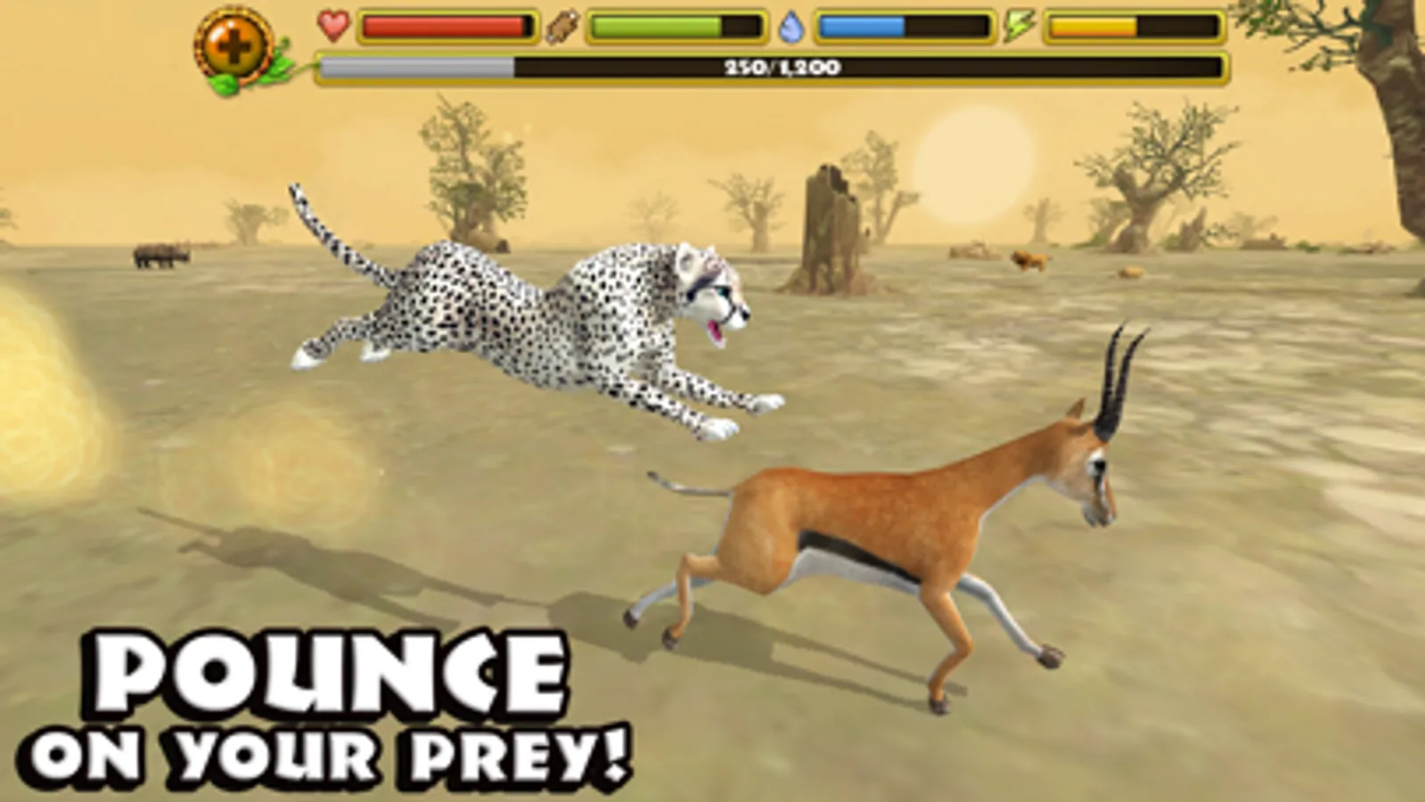 Enter into the wild savanna and live the life of a Cheetah! Explore a vast grassy plain filled with ferocious animals of all shapes and sizes. Raise a family, hunt down food, and battle for your life against fierce predators like hyenas, crocodiles, and lions!