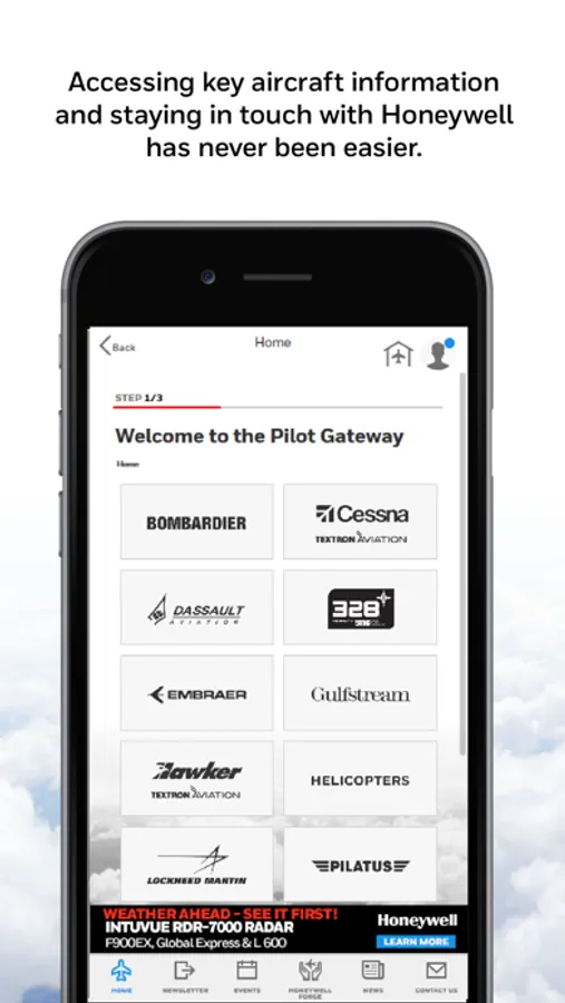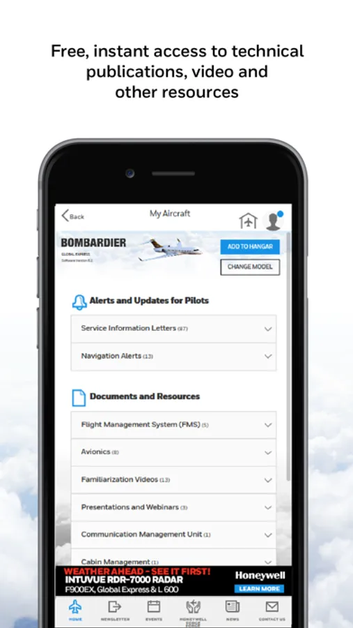 The Honeywell Pilot Gateway mobile app gives corporate aircraft pilots instant access to information about their Honeywell products and services. It’s a one-stop solution that organizes technical publications, videos and other valuable resources by aircraft make, model and system. The gateway also makes it easier than ever for pilots to stay in touch with Honeywell Aerospace by providing a simple tool for submitting questions, feedback and technical issues.